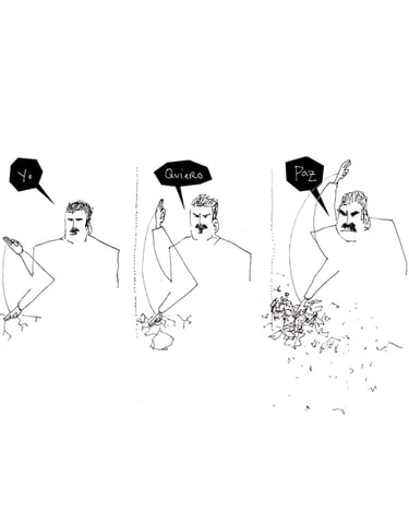 2013–2014 drawings inspired by the political, economic, and social situation in Venezuela.