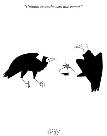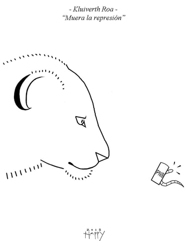 2015 minimalistic-style animal drawings depicting everyday situations in Venezuela. Published in the national newspaper El Universal, most of the accompanying text was censored.